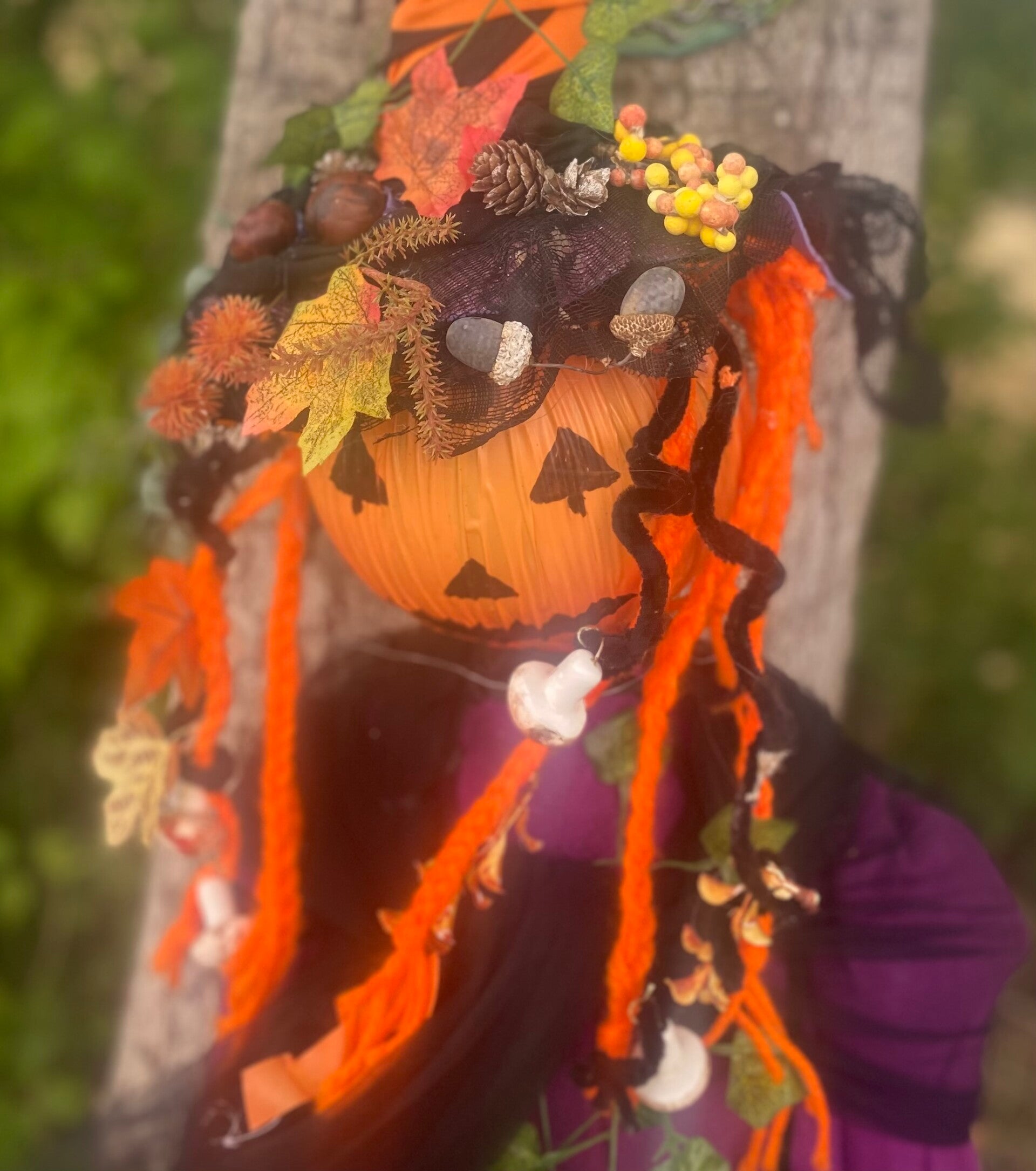 adorned with plaited wool, acorns, leaves, conkers etc.
